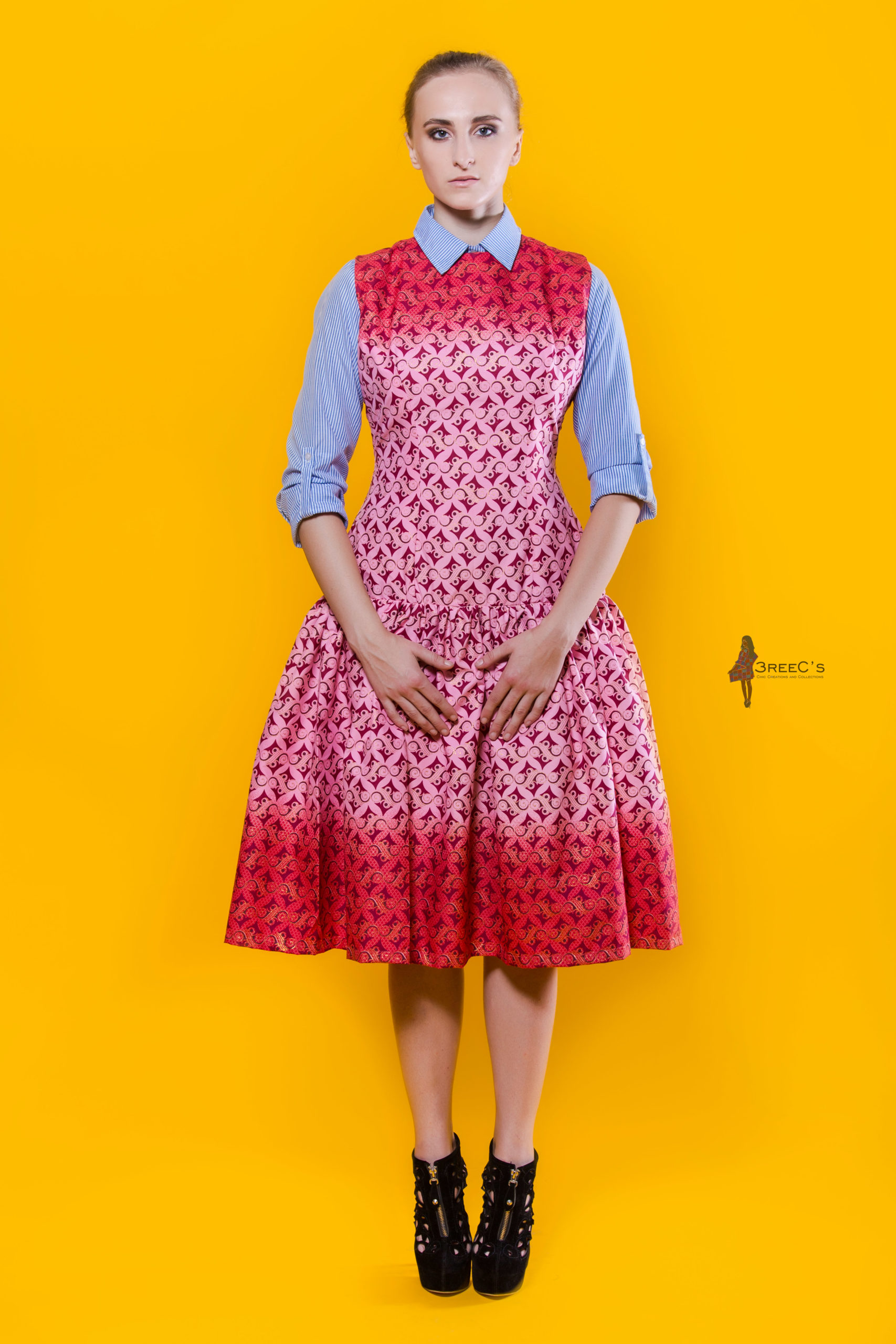 This red midi dress is made from wax print on 100% cotton fabric (Ankara). This dress has has a zip at the back.